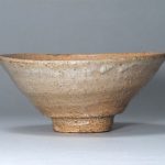 井戸茶碗(いどちゃわん)は李朝の時代に製作された高麗茶碗の1つと言われています。当時、日本の茶人に大変好まれた茶碗であり、「一井戸 二楽 三唐津」と言われた程の名器です。井戸茶碗の名称の由来は諸説あり定かではありませんが、有名な話として井戸茶碗を見込みから覗き込んだ時に井戸のように深くみえることから井戸茶碗と名付けたのだとか。井戸茶碗の魅力はなんといっても寂びた風景でありましょう。美術館が所蔵する名碗の数々を見ると、いかに長い歴史を経て今ここに現存していることをしみじみと実感出来るはず。実物をじかにみると、轆轤を使いながらも完璧な形状を保たず、偶然に出来たゆがみや割れ等が自然体で現れていることに感動するはずです。