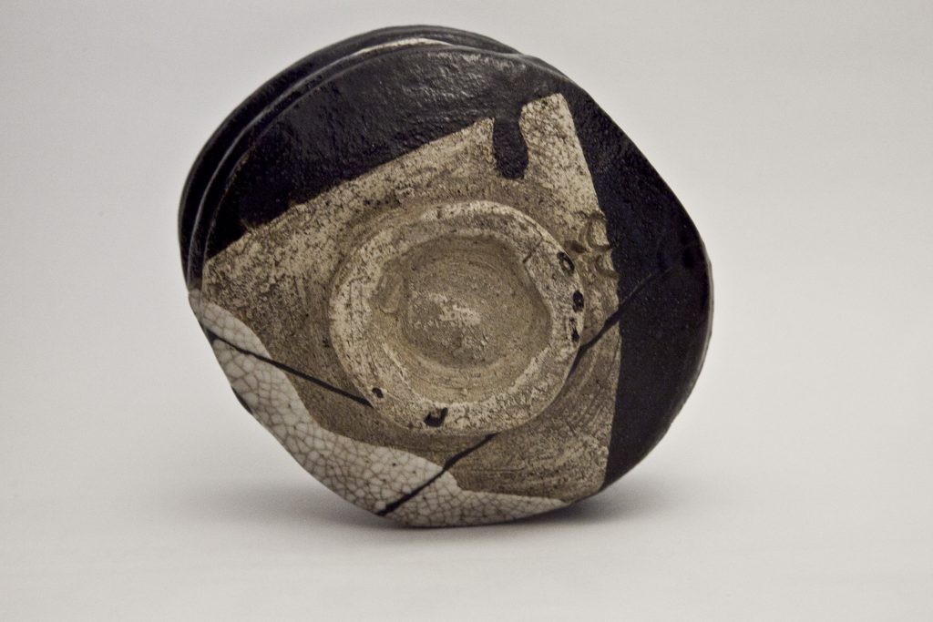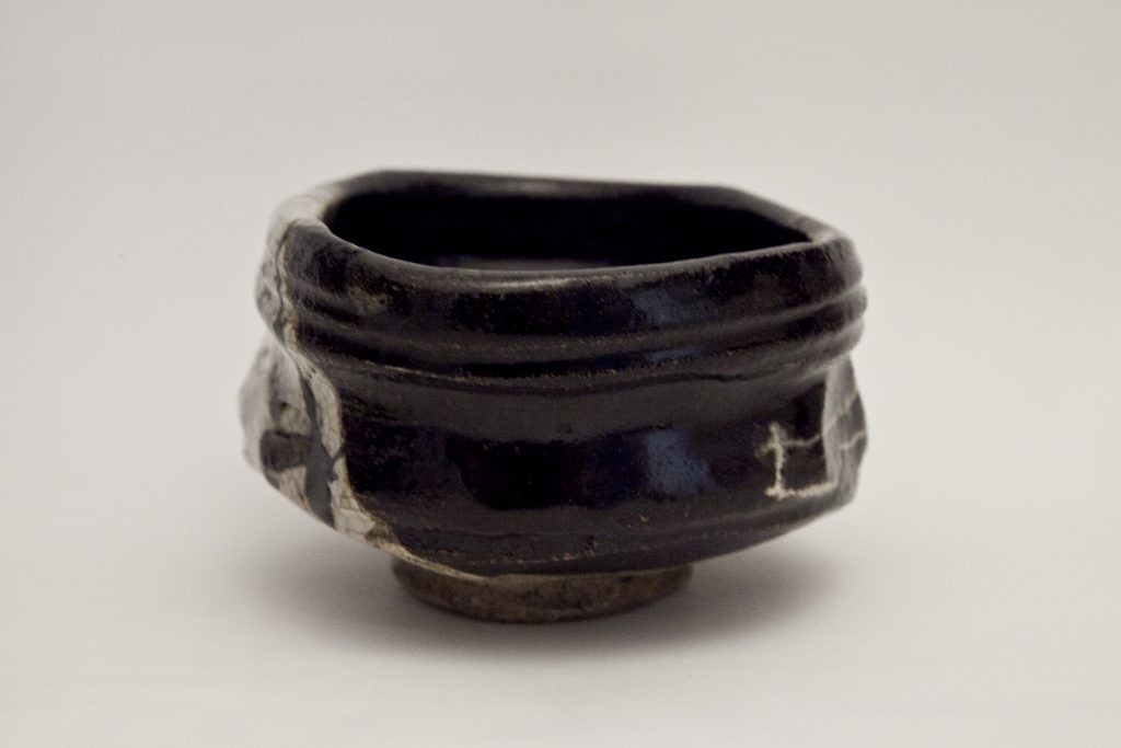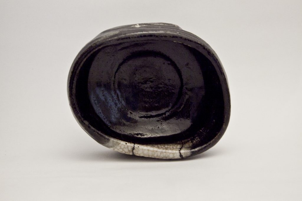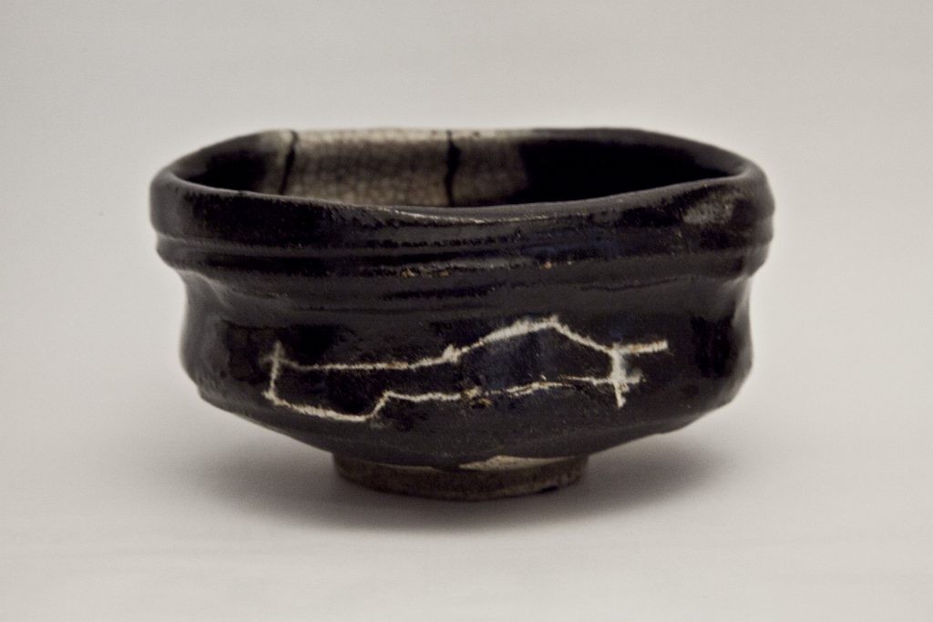 ぱっくりと二つに割れてしまった織部茶碗。しかし、丁寧な継ぎが施してあり、また高台は傷つけておらず、程よく景色になっている。豪快さは影を薄めつつ、上品な絵が印象的。九州の華族山下家に渡った記録が残り、その後博多の豪商が仕入れ、とある男爵の手に渡ったのだとか。