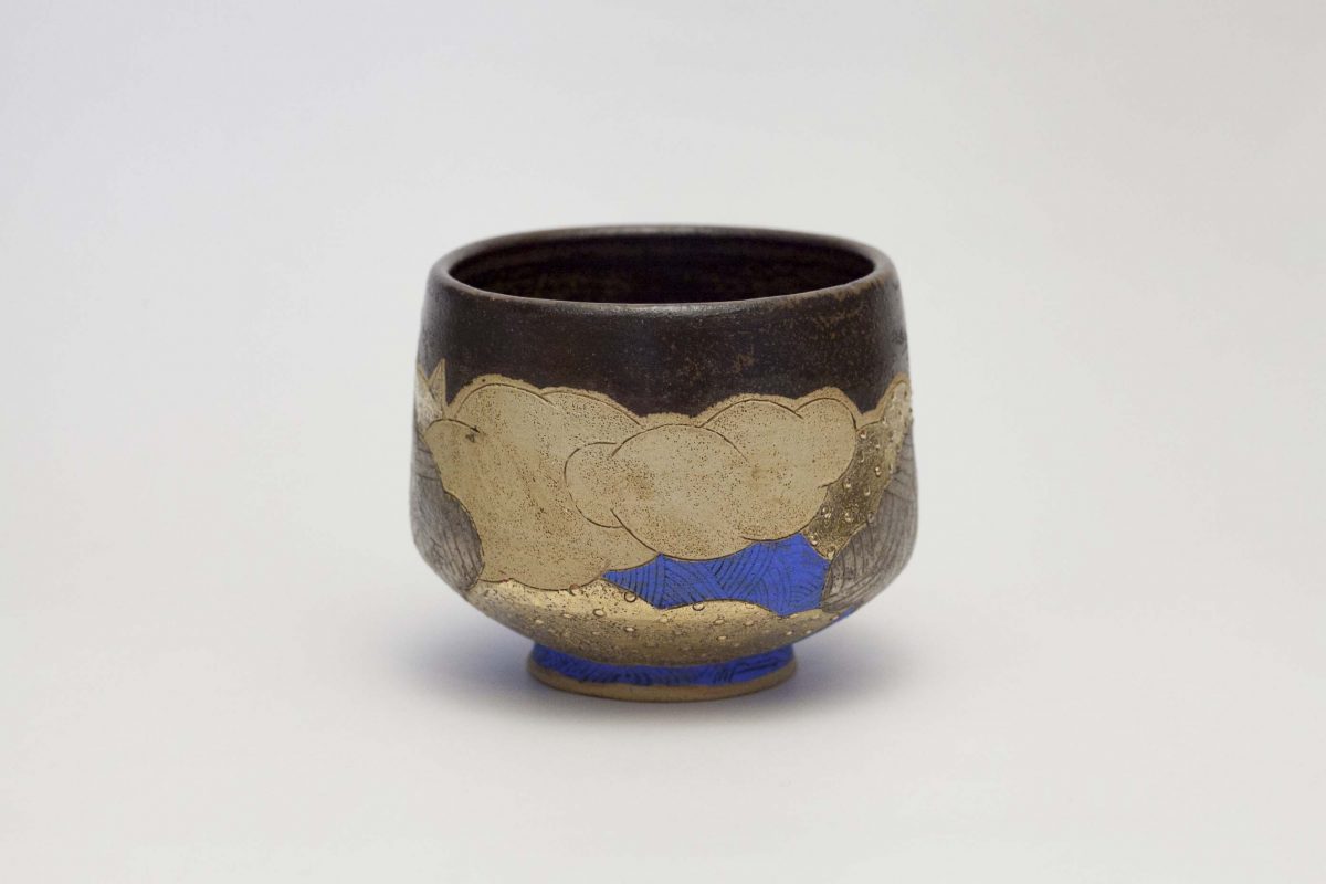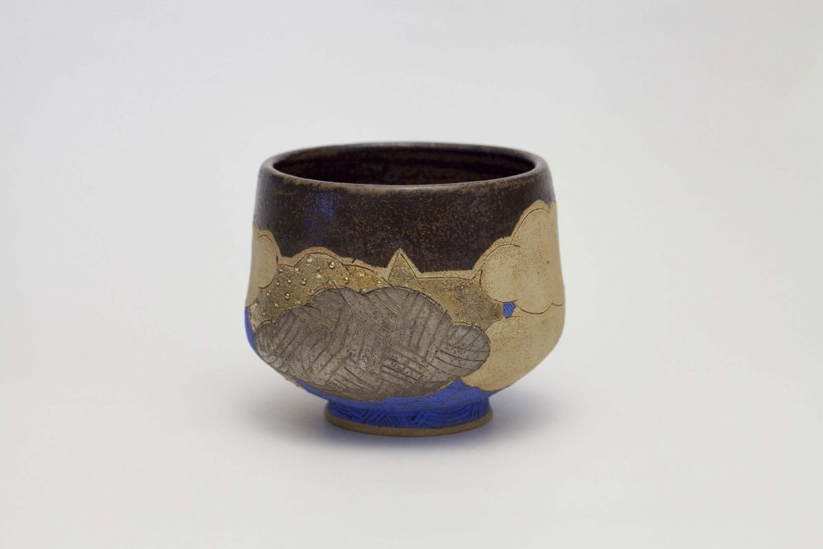 はっきりと描かれていない猫と金・銀を使った模様(雲)がとてもバランスよく描かれており、一目ぼれして入手した茶碗。ちなみに、作家さんは人間用の茶碗ではなく、猫用の茶碗をイメージしたのだとか。
